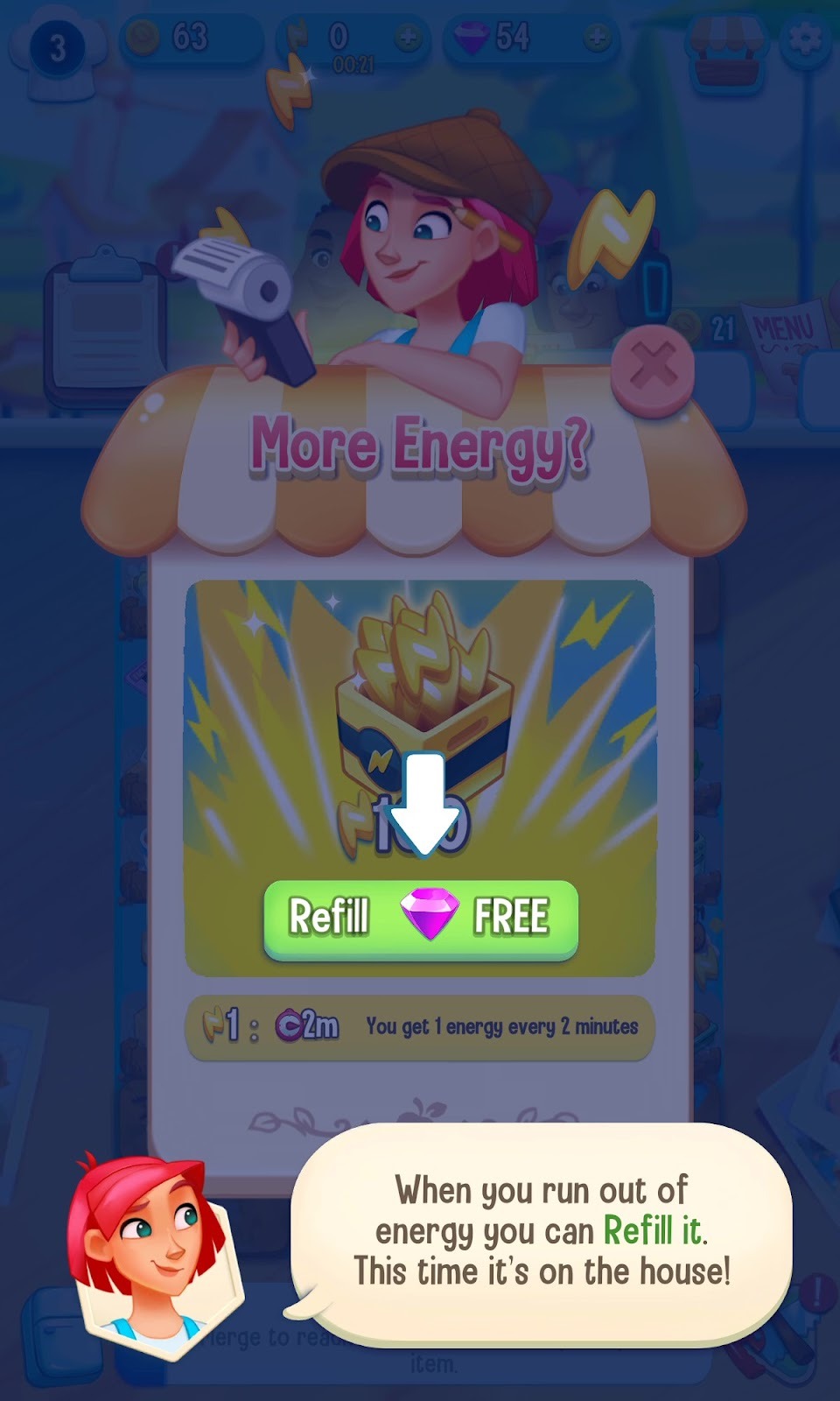 - Watch ads: You鈥檒l occasionally get offers to watch an ad to earn 15 energy.